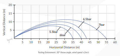 Throw Range: 55 metres at 7 bar.